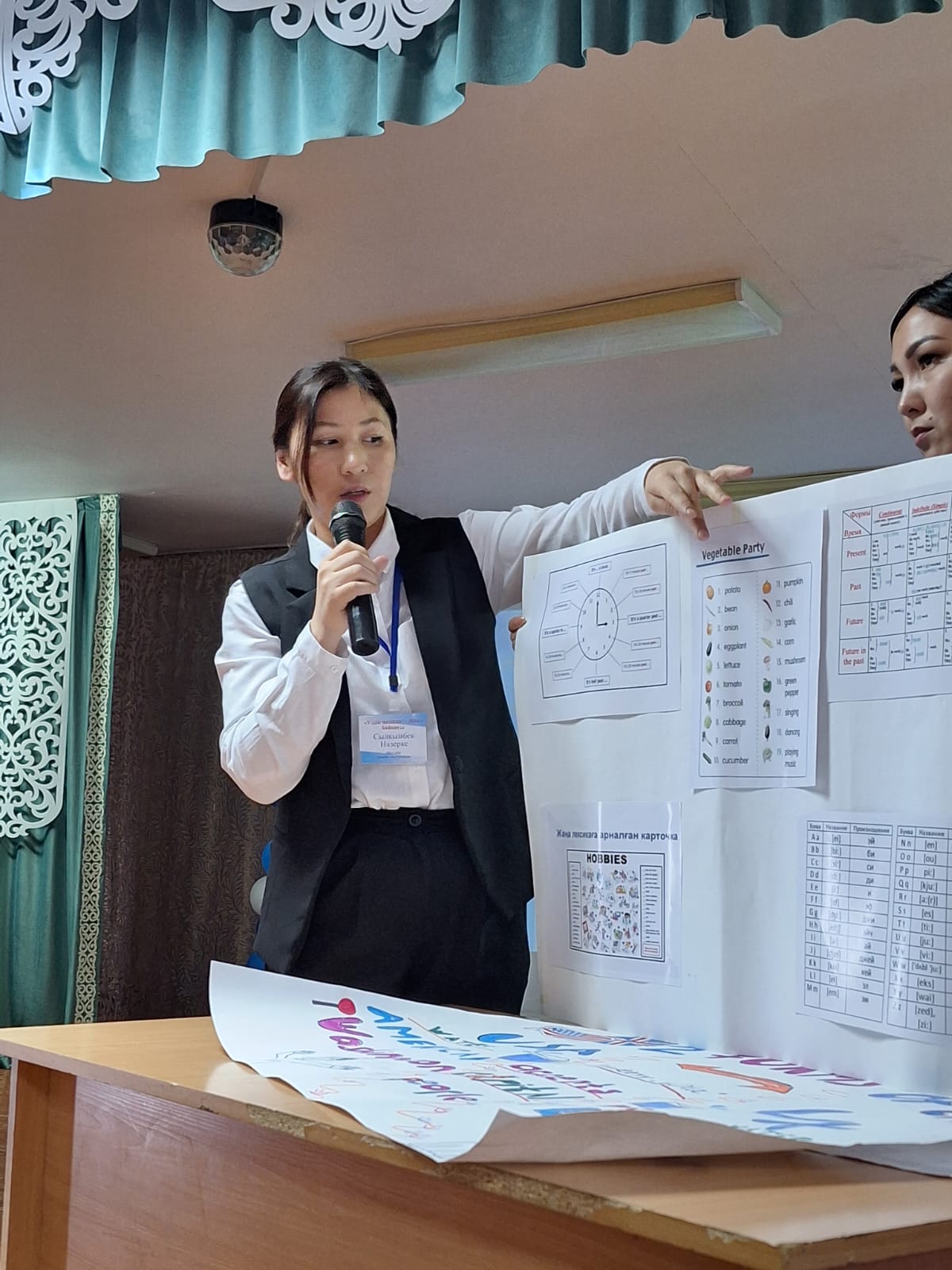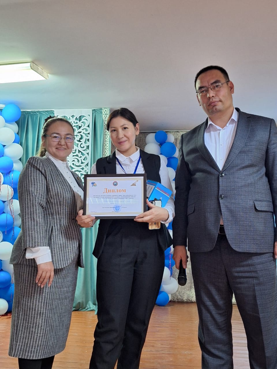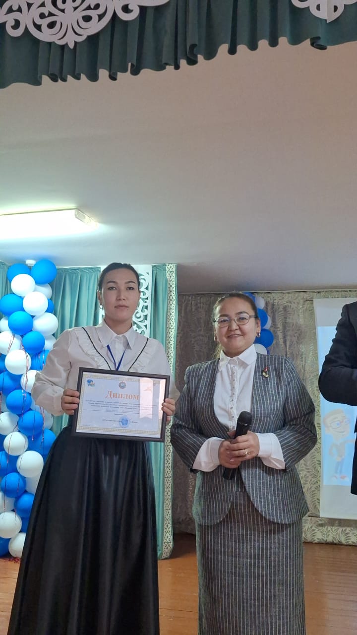 Байқауға 6 ұстаздан өтініш келіп түсті. Байқау кезеңдері Көрнекілік сайысыn Менің сабақта қолданылатын әдісімnСитуатциялық сұрақтарға жауап беру портфолио қорғау Ұстаздарымыз осы кезеңдер бойынша өздерінің шеберліктерін көрсетті. Байқау нәтежесі бойынша Турегелдиева Ұлжан апайымыз (шет тілі пәнінің оқытушысы) облыстық кезеңге жолдама алды. орын Әшір Дамира апайымыз (математика пәнінің оқытушысы) орын Сылқымбек Назерке апайымыз (шет тілі пәнінің оқытушысы) Қаракулова Дария апайымыз (тарих пәнінің оқытушысы) Қабылбекова Алтынай апайымыз (биология пәнінің оқытушысы) Айтбек Камшат апайымыз (дене шынықтыру пәнінің оқытушысы)